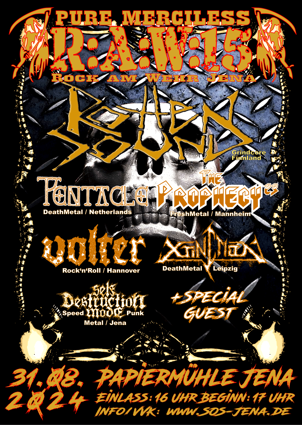 Hakenort Bielefeld, GermanyPENTACLE (Ancient Death, NL) HERETIC (Black ‘n Roll Punk, NL) MASSIVE ASSAULT (Old Death, NL) KARLOFF (Raw Punk, Oldenburg) TRAPJAW (Technical Death) Heimspiel!